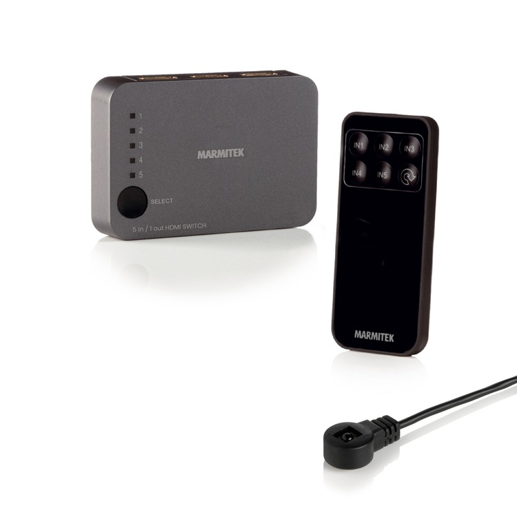 Met deze HDMI switch kun je eenvoudig 5 apparaten met 1 HDMI kabel met je televisie verbinden. Handig wanneer je tv te weinig HDMI poorten heeft of als je juist je kabels uit het zicht wilt hebben. De Connect 350 UHD 2.0 schakelt automatisch naar de HDMI bron die actief is. De afstandsbediening kun je gebruiken om tussen HDMI bron te switchen wanneer twee bronnen tegelijkertijd aanstaan. De UHD 2.0 range is geschikt om aan te sluiten op de allernieuwste Ultra HD apparatuur voorzien van HDMI 2.0 én HDCP 2.2 beveiliging. Aanvullende informatie - Marmitek Connect 350 UHD 2.0 Handleiding - pdf (https://objects.icecat.biz/objects/mmo_93821703_1637147590_0565_5497.pdf) - - Marmitek - Televisie accessoires