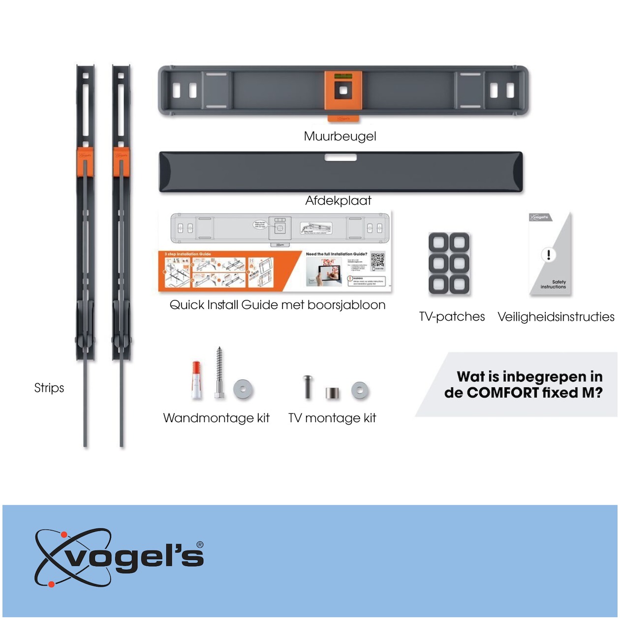 De Vogels TVM 3405 Vaste tv-beugel Zwart is de perfecte oplossing om jouw tv stevig en stijlvol aan de muur te bevestigen. Deze vaste muurbeugel combineert een strak design met de betrouwbare kwaliteit waar Vogels om bekend staat. Met zijn veelzijdige compatibiliteit is deze beugel geschikt voor tv's van 32 tot 77 inch, waardoor hij ideaal is voor vrijwel elke woonkamer of slaapkamer. Voordelen van de Vogels TVM 3405 Vaste tv-beugel Zwart * Geschikt voor tv's van 32 tot 77 inch (81-196 cm) * Slechts 2,5 cm van de muur voor een strak resultaat * Eenvoudige montage met het handige ClickLoc™-veiligheidssysteem Strak en ruimtebesparend design Met de Vogels TVM 3405 bevestig je jouw tv op slechts 2,5 cm van de muur. Dit minimalistische en ruimtebesparende ontwerp zorgt voor een elegante en moderne uitstraling, zonder storende kabels in het zicht. Ideaal voor wie een strak interieur belangrijk vindt. Betrouwbare kwaliteit en maximale veiligheid Deze tv-beugel is - Geschikt voor 32-77 inch - Vast - Servicestand