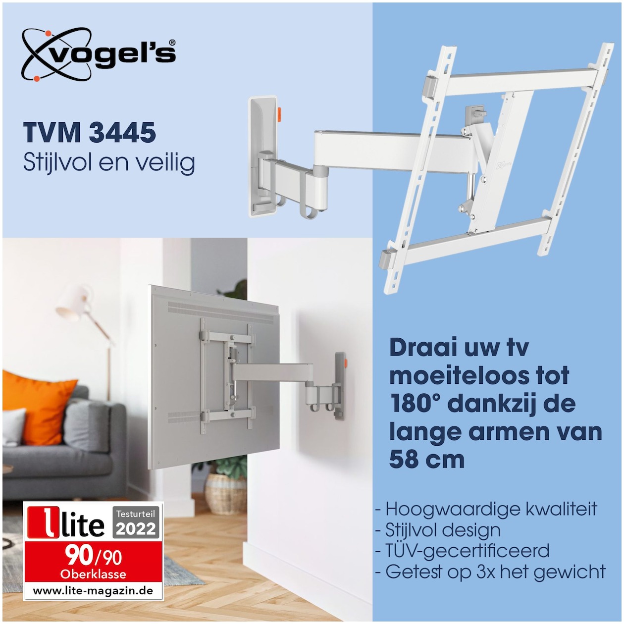 De Vogels TVM 3445 Draaibare tv-beugel Wit muurbeugel hang je gemakkelijk op in de woon- of slaapkamer. Met een VESA-maat van 100 x 100 mm tot 400 x 400 mm is deze muurbeugel geschikt voor televisies met een inchmaat van 32 inch tot 65 inch. Omdat de muurbeugel kantelbaar is, plaats je de tv in de juiste positie tegen de muur. Zo hang je een tv aan de muur × Advies Zo hang je een tv aan de muur Robert en Annelies zijn op bezoek bij Vogels en laten je in deze video stap voor stap zien hoe je een televisie ophangt met een beugel. Bekijk de video () Zo hang je een tv aan de muur Robert en Annelies zijn op bezoek bij Vogels en laten je in deze video stap voor stap zien hoe je een televisie ophangt met een beugel. - 32"- 65" - Draai- en kantelbaar - Draai je tv tot wel 180°